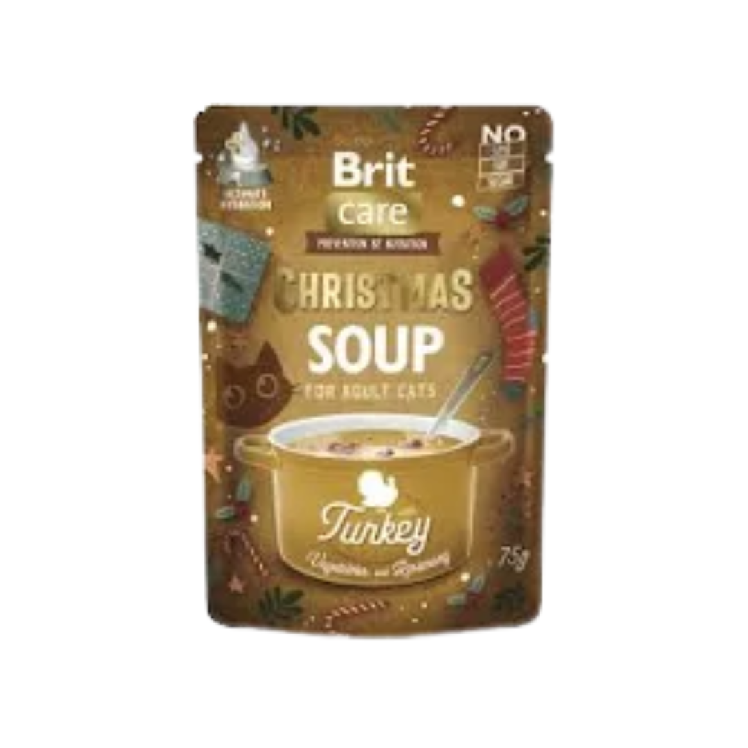 A Brit Care Cat Christmas Soup egy könnyű, kiegészítő nedves eledel felnőtt macskák számára. A finom pulykahús zöldségekkel és egy csipetnyi rozmaringgal kombinálva egy különleges, étvágygerjesztő ételt alkot, amely nem csak az ízével kápráztat el, hanem támogatja kedvence megfelelő folyadékpótlását is.