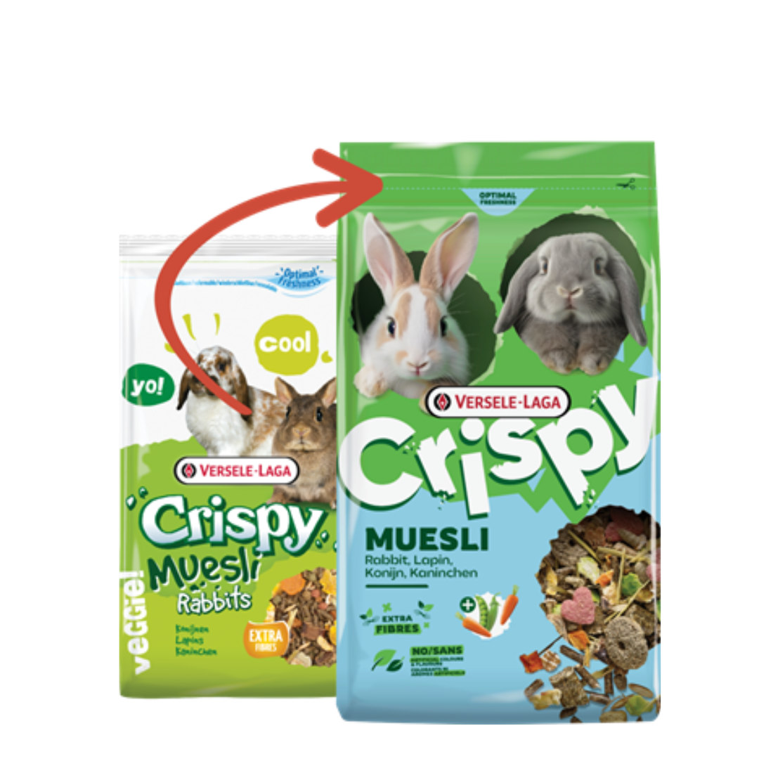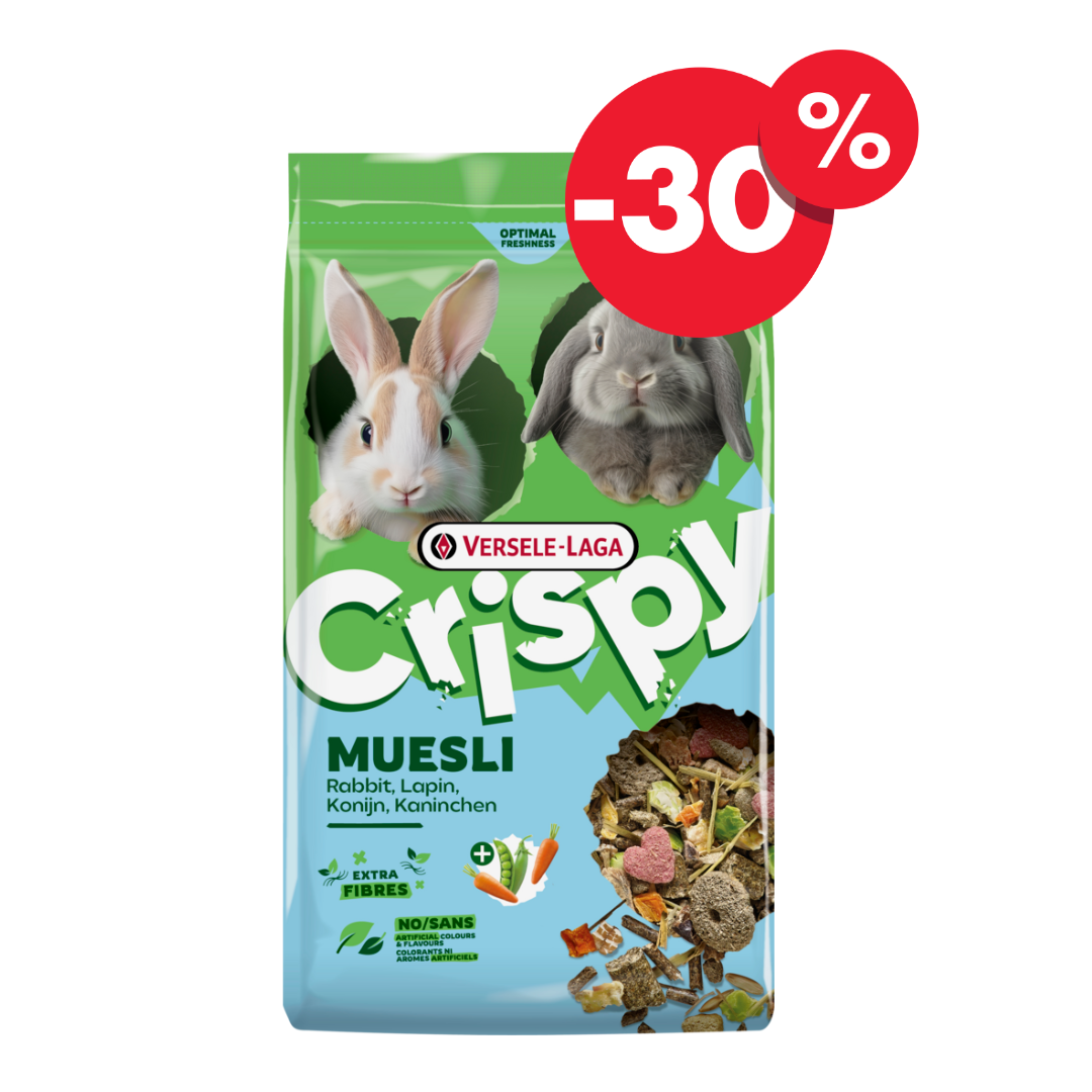 A Crispy Muesli nyulaknak rostban gazdag, táplálkozás szempontjából kiegyensúlyozott keverék, tele ízekkel és textúrával, amely leköti a kíváncsi rágcsálókat. Mesterséges színezékek és ízesítők nélkül. Minden nyúlfajtának megfelelő.