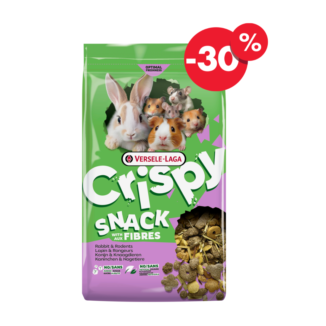 Ízletes és ropogós snack-keverék, rostban gazdag, nyulak és rágcsálók számára.A Crispy Snack with Fibres egy ropogós finomság, amely kiegészíti kis kedvenced napi étrendjét. Egyszerűen ízletes, ropogós falat, amely kielégíti bundás barátod természetes rágcsálási ösztönét, változatosságot és örömet visz a napjába.