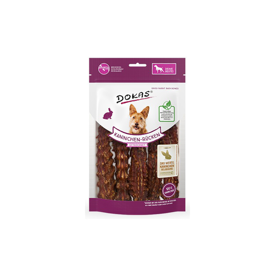 A “Dokas szárított húsos nyúlgerinc” egy természetes, adalékanyagoktól mentes jutalomfalat kutyusoknak.