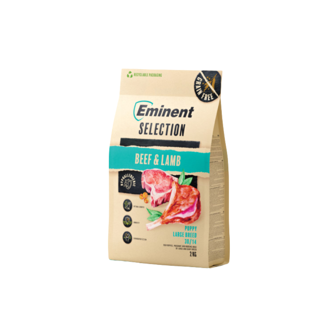 A marha- és bárányhúsból származó kiváló minőségű állati fehérjék a csont- és izomfejlődéshez fontos esszenciális aminosavak széles spektrumát biztosítják a kölyökkutyának. A nagytestű kutyafajták kölykeinek eltérő tápanyagigényük van, az ízületek túlterhelésének elkerülése érdekében az eledel fontos porcvédő szerekkel van kiegészítve. A táp ráadásul gabonamentes, ezért nem csak könnyen emészthető, de csökkenti az allergia kialakulásának kockázatát is. Ez főként az érzékeny emésztéssel rendelkező kölyökkutyák számára előnyös. A gyógynövények és béta-glükánok speciális komplexe segít az erős immunrendszer támogatásában. Ezzel az eledellel a kölyökkutya már az első lépésektől kezdve kivételes gondozásban és minőségi táplálásban részesül.
