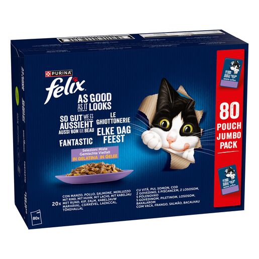 A FELIX Fantastic® eledelek az ízek széles választékában elérhetőek, hogy kielégítsék cicád változatos igényét.