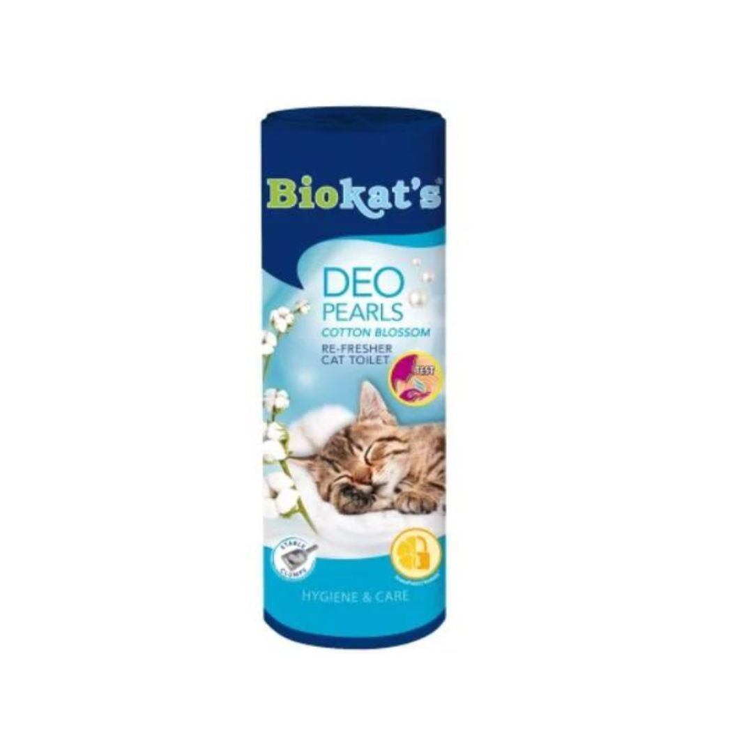 A Biokat’s Deo Pearls egy szagtalanító, mely egyúttal kellemes gyapjúvirág illattal frissíti az almot.