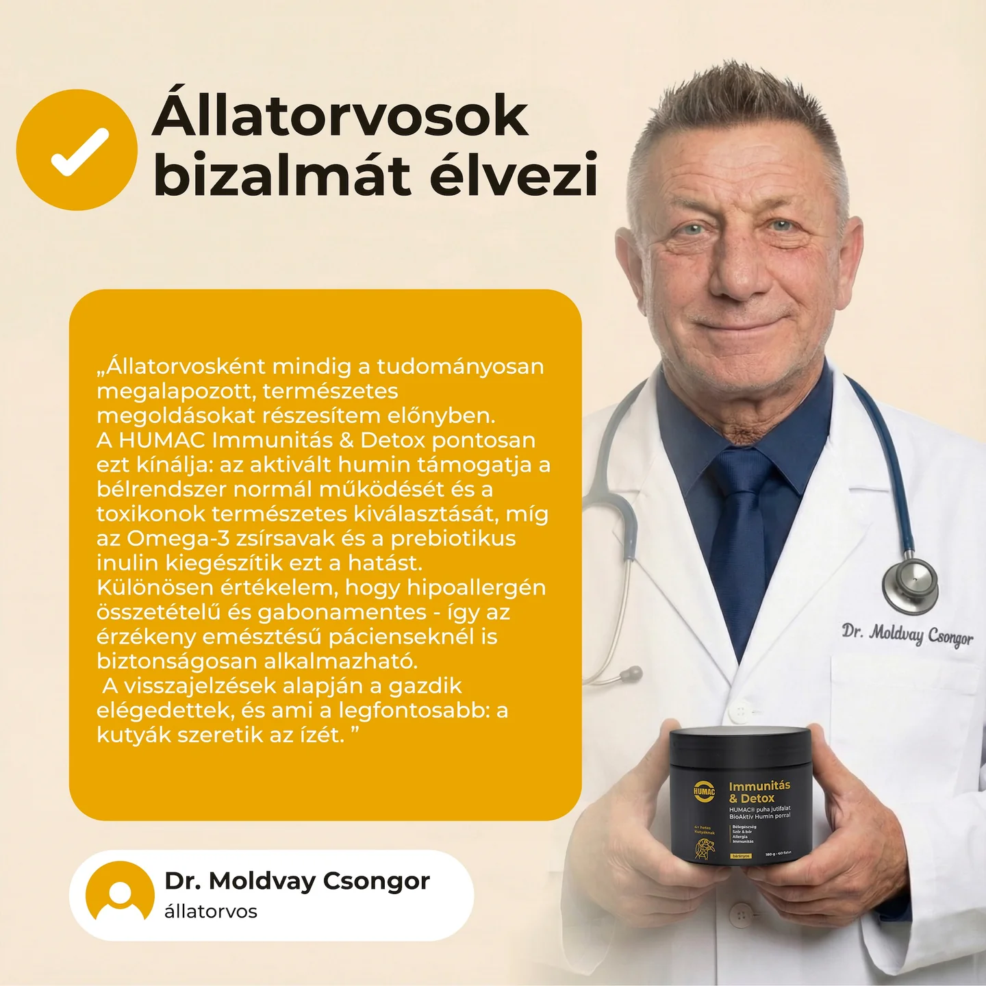 Állatorvos által formulált hipoallergén puha jutifalat aktivált huminsavval, Omega-3-mal és prebiotikummal – támogatás az immunrendszer és méregtelenítés számára.