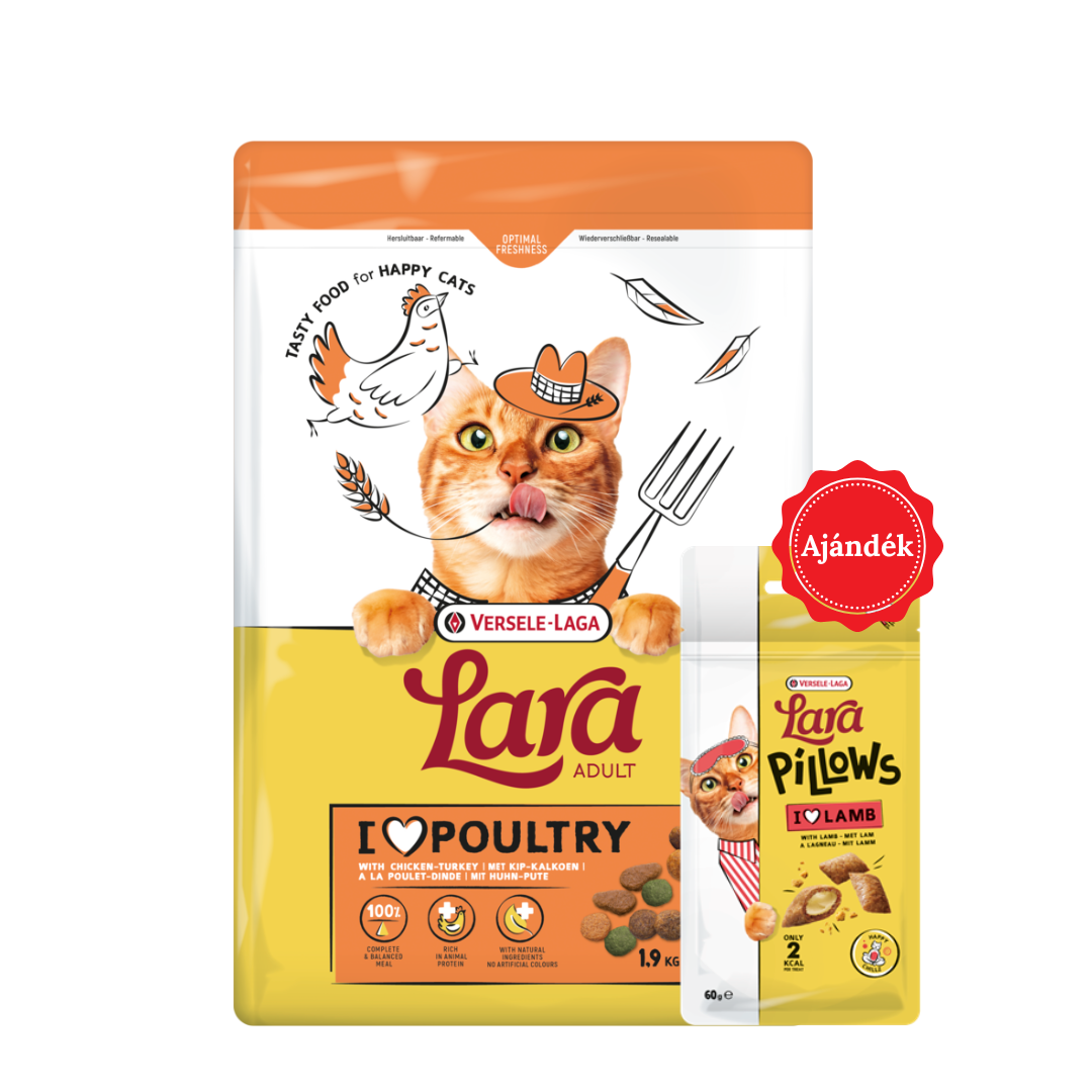Lara adult száraztáp Pulyka és csirke ízesítéssel 1,9kg + ajándék jutalomfalat