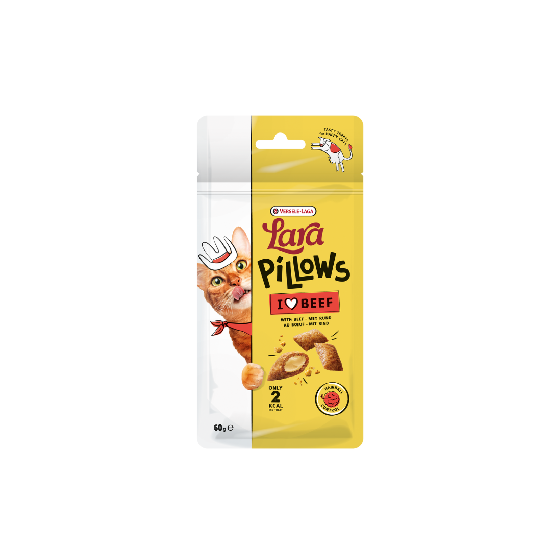 A Lara PILLOWS with BEEF Hairball Control ízletes marhahúsos macskapárna, amely megakadályozza a szőrlabdák kialakulását. Malátával és növényi rostokkal dúsítva az élvezetekkel töltött időt kényeztetéssé alakítják, miközben segítenek a hajgolyók elleni küzdelemben. Nem használunk mesterséges színezékeket. Finomságaink olyan természetes összetevőket tartalmaznak, mint a növényi rostok és a maláta. Csak 2 kcal falatonként.